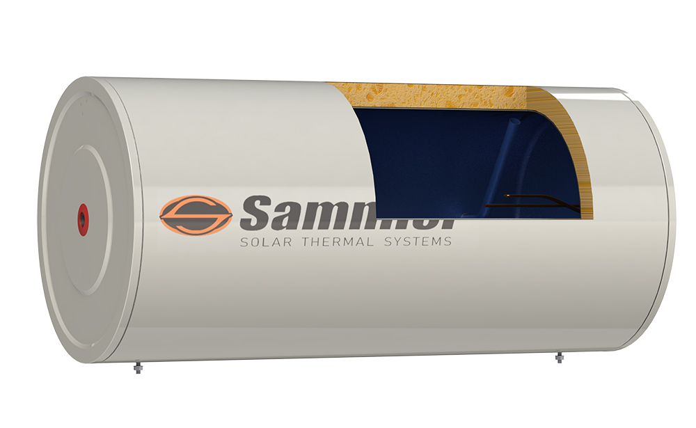 Thermosiphon solar tank, open loop (direct) with internal enamel coating. The tank is equipped with a magnesium anodes, injected PU foam of high density and electrical element (backup). Available at 160-200-300l.