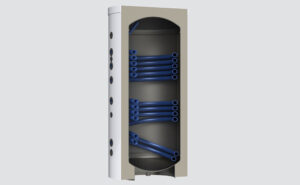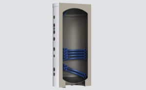 Ballon de stockage d’eau chaude sanitaire avec 1 ou 2 échangeurs de chaleur, conçu pour le raccordement à différentes sources d’énergie (solaire, chaudière, pompe à chaleur). Le ballon permet également l’installation d’une résistance électrique.